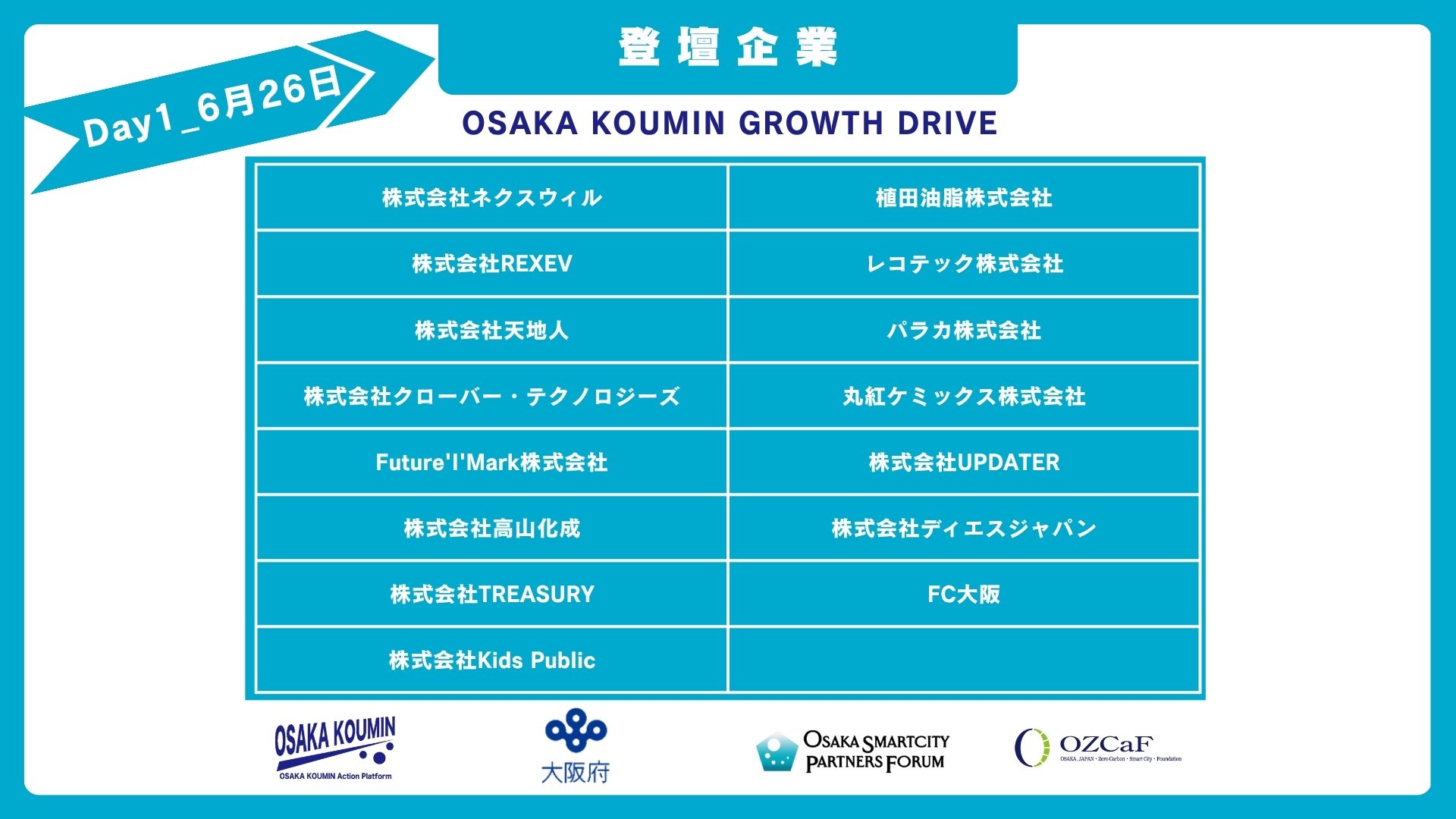 「OSAKA KOUMIN GROWTH DRIVE」は、2020年度の初開催から現在に至るまでに9回行われ、参加企業が社会課題解決・府⺠QOL向上等に資する「公⺠連携」の事業提案を発表、そしてその実現に向けて⼤阪府・府内市町村職員(公⺠連携担当)とのオンラインディスカッションを実施してきた。