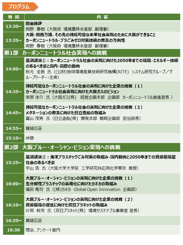 「持続可能な社会の実現に向けて必要となる環境技術のイノベーションについて知っていただき、今後どのような準備を進めていけばよいか考える絶好の機会です。ぜひご参加ください。」(大阪府)