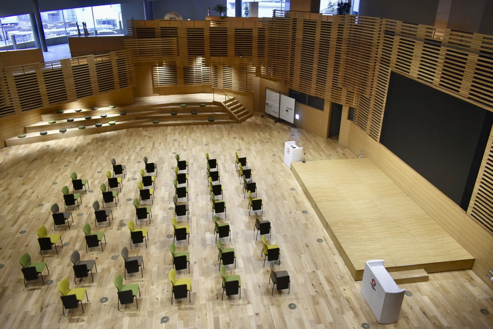 また、発表会終了後、会場であった「大和ハウスグループ みらい価値共創センター」の見学会も行われ、施設のコンセプトである「最新の研究・知見、環境・設備技術やDX技術、SDGs対応の仕様とデザイン」の説明を交えながら紹介を受けた。