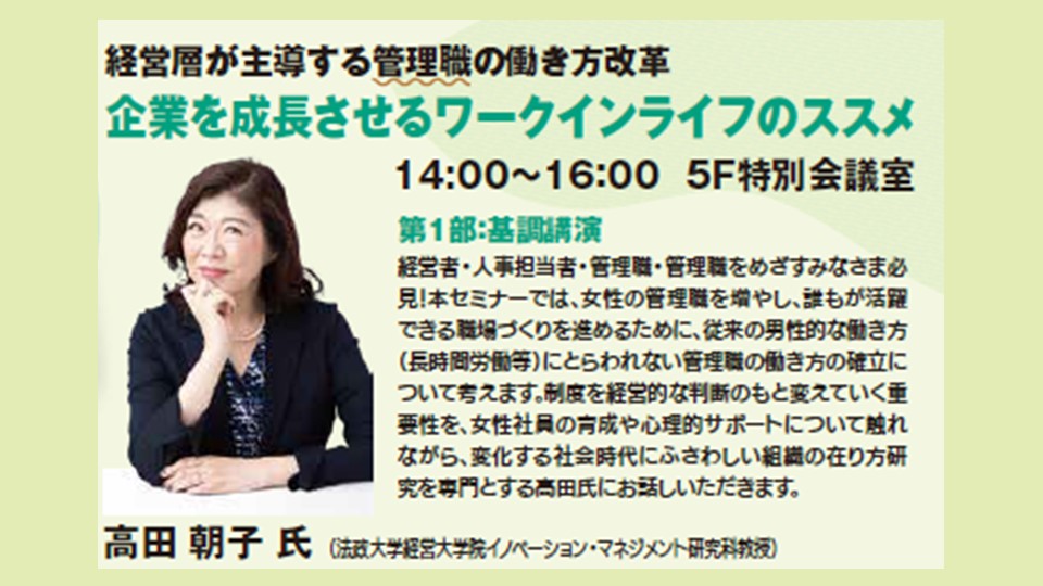 〇女性活躍推進セミナー「経営層が主導する管理職の働き方改革~企業を成長させるワークインライフのススメ」