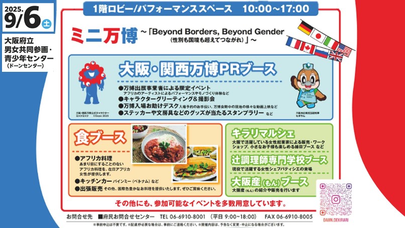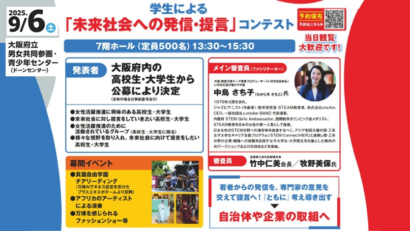 大阪府では「男女共同参画社会づくり」すなわち、府民一人ひとりが、性別にとらわれることなく、個性と能力を十分に発揮して社会に参画し、自分らしくのびやかに暮らせる社会の形成をめざして、取り組みを進めている。今年度も、「ドーン de キラリ フェスティバル 2025」ならびに「ドーン de キラリ フェスティバル 2025 with万博」が以下のとおり開催される。参加を希望される方は、案内をご確認のうえ、お申込みください。
