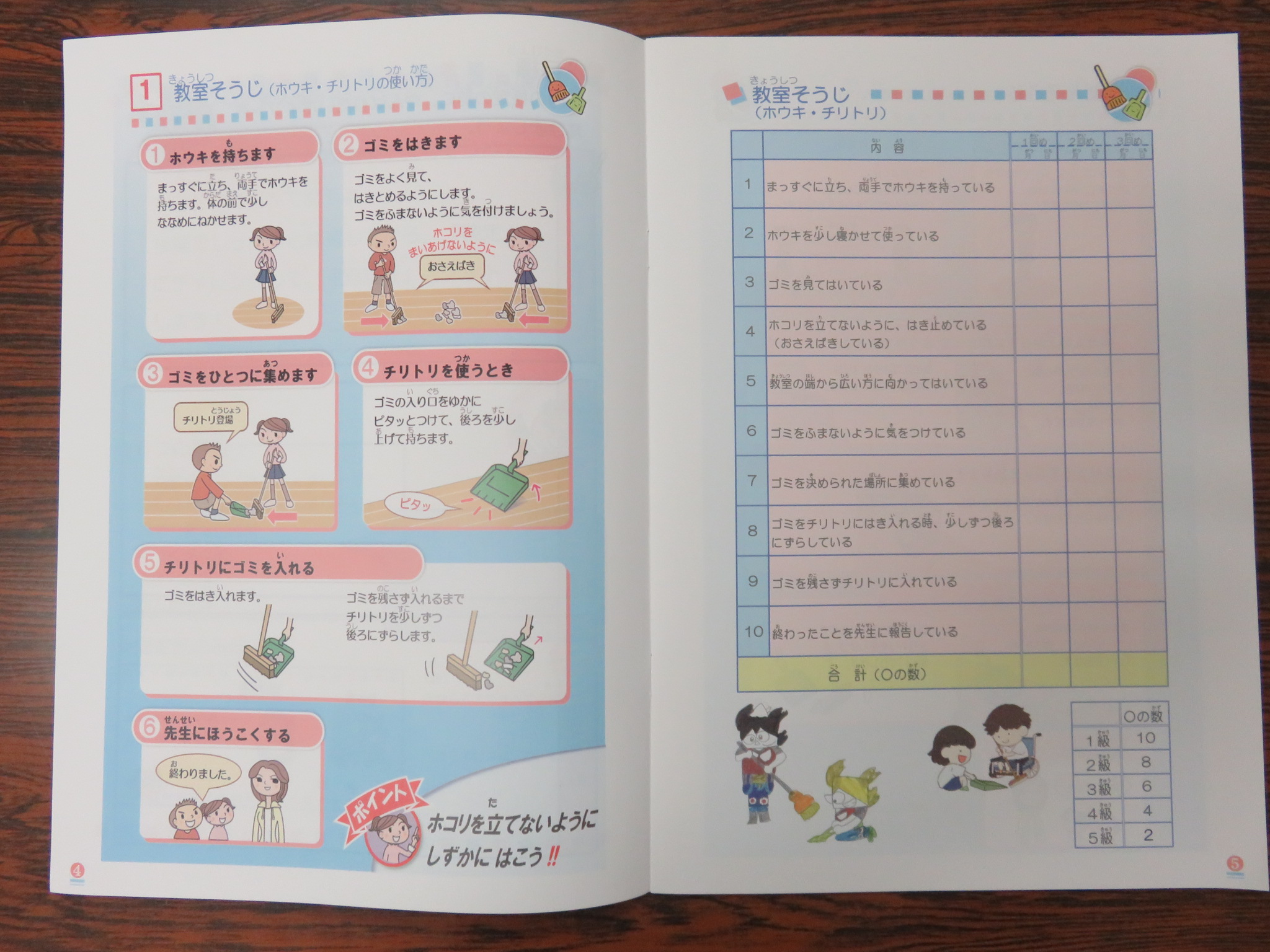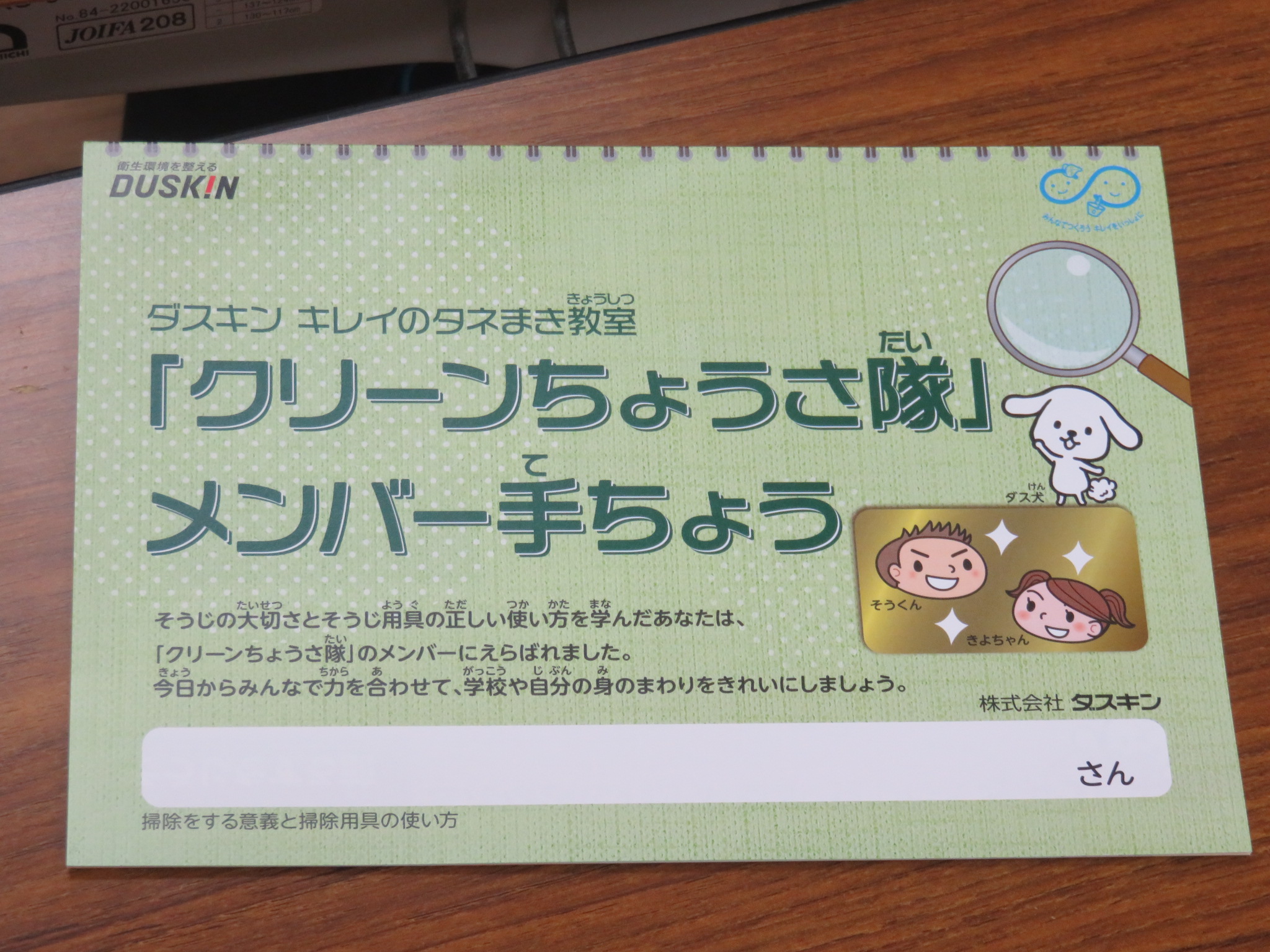 ダスキンは平成12年より「掃除を通して子どもたちの力を伸ばす」をテーマに研究をはじめ、平成24年より掃除の大切さや用具の正しい使い方について、小学校を中心に出前授業を実施している。令和6年4月に大阪府教育庁とダスキンの公民連携の取組として、支援学校に通う児童生徒に「楽しみながら掃除を学んでもらいたい」という思いから「おそうじ手帳」を制作した。