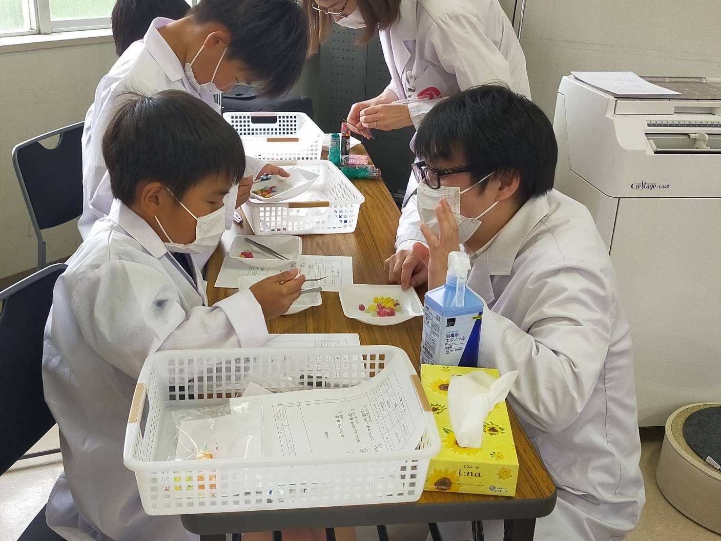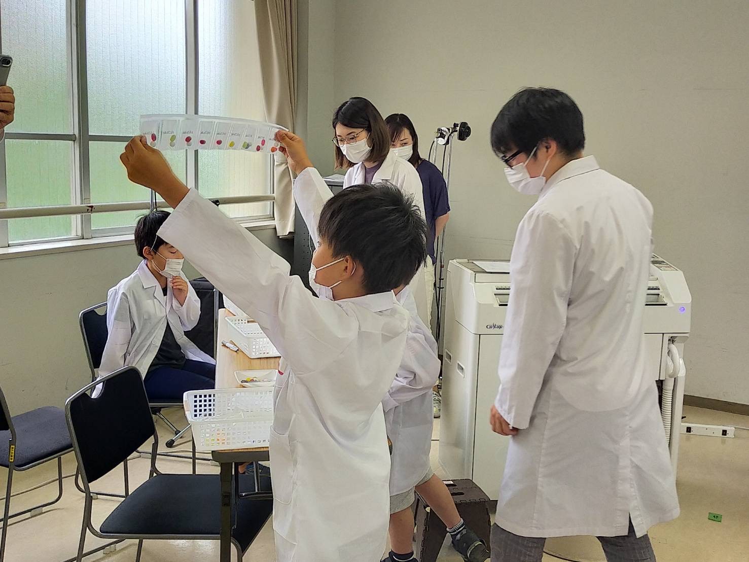 本協定に基づく取組みとして、令和4年5月15日(日)に「薬剤師さんってなにするの?~白衣を着てお薬を作ってみよう~」をテーマにキャリア教育イベントを子どもLOBBY(※)にて開催。同市内の小学生が参加し、処方せんの受付対応や、お菓子を使った一包化(一つの袋に複数のお薬を入れること)などを体験した