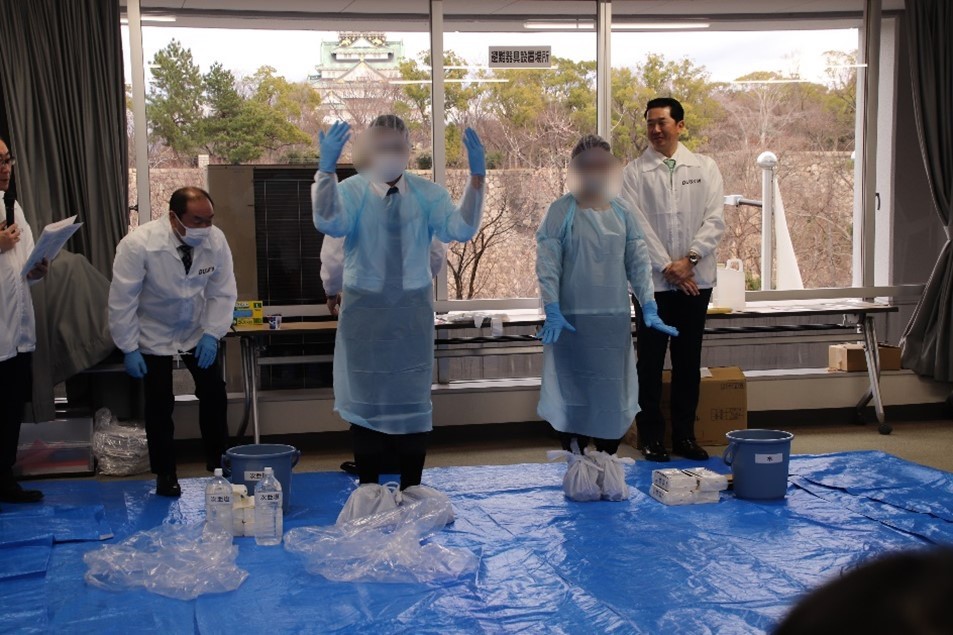 大阪府との共催により、2021年からHACCPに沿った衛生管理セミナーを定期的に開催しており、大阪府内の食品等を扱う事業者さまを対象に、正しい衛生手洗いや嘔吐物処理などを、実演を交えてわかりやすく学んでいただいています。