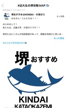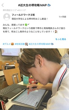 堺市と包括連携協定を締結している近畿大学(大阪府東大阪市)は、地域コミュニティアプリ「ピアッザ」を運営するPIAZZA株式会社(東京都中央区)と、地域活性化をめざした取組として、堺市の魅⼒を若者向けに発信する産学連携プロジェクトを実施している。