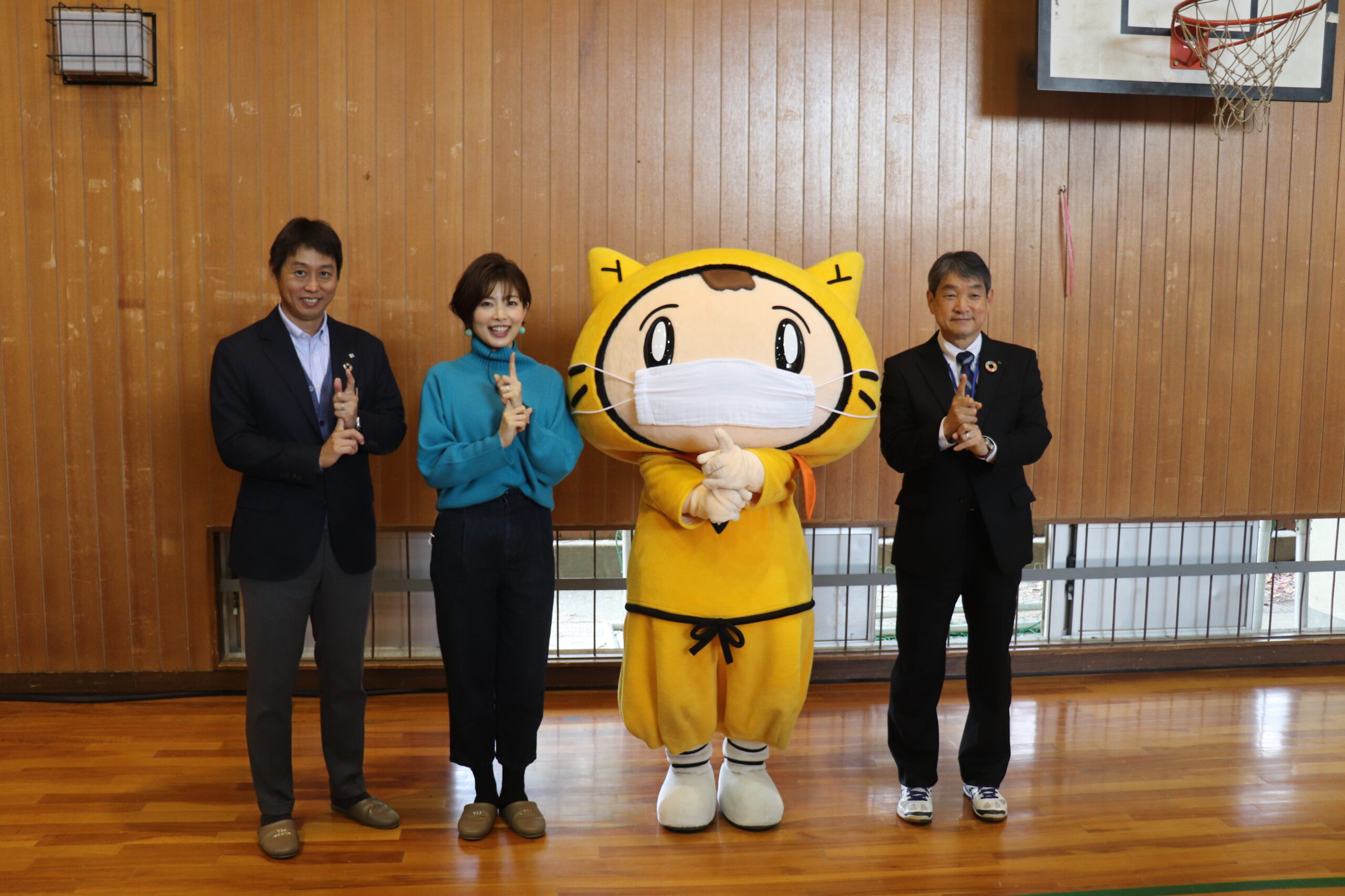 このギネス世界記録への挑戦の様子は、令和4年2月5日(土)11時00分から読売テレビでの地上波放送を予定していることから、読売テレビアナウンサー 林 マオさんとシノビーも駆けつけ、田中 祐二 町長が子どもたちと楽しくダンスをする様子や、子どもたちへのインタビューが撮影された。